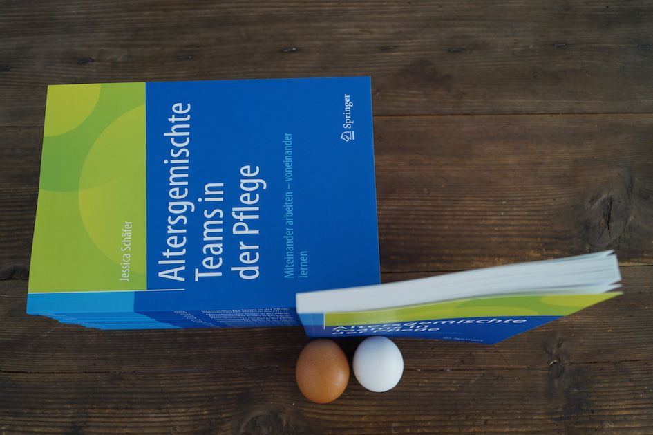 Was das mit diesem Blogbeitrag zu tun hat? Vor kurzem ist beim Springer Verlag mein Fachbuch „Altersgemischte Teams in der Pflege. Miteinander arbeiten – voneinander lernen“ erschienen und jetzt stellt sich die Frage der Promotion-Strategie: Ente oder Huhn?